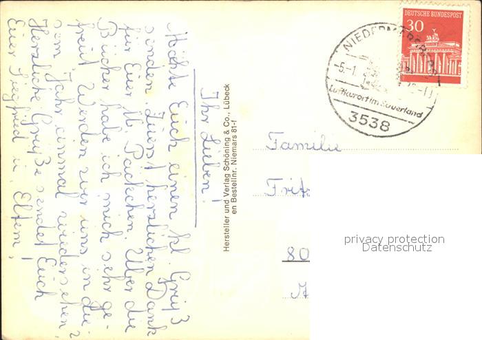 72106888 alte Postkarte Niedermarsberg Schwimmbad Kirche postalisch gelaufen Erhaltung siehe scans KatCode: 11110005958024