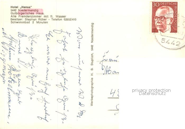 73785249 alte Postkarte Niedermendig Koblenz Hotel Hansa postalisch gelaufen Erhaltung siehe scans [WerneD78] KatCode: 11110007137069