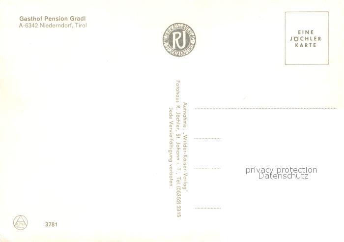 73641621 Niederndorf Kufstein Gasthof Pension Gradl postalisch nicht gelaufen Erhaltung siehe scans [FriedD77] KatCode: 11390335070518