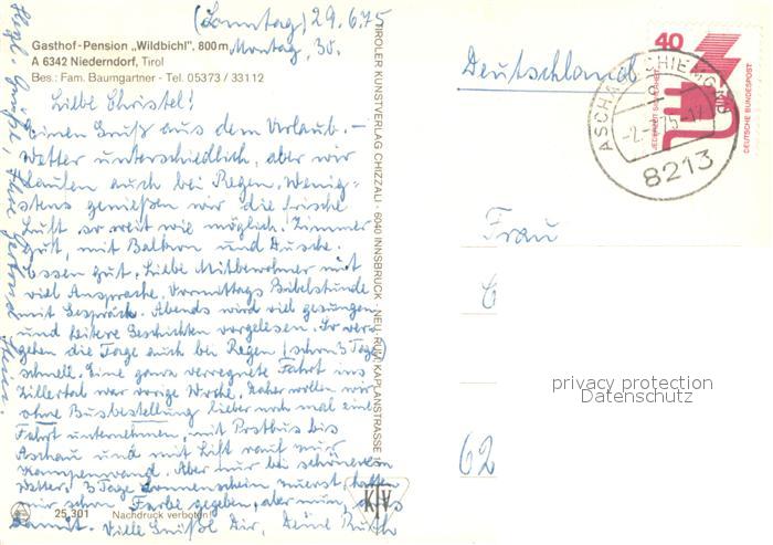 73643581 alte Postkarte Niederndorf Kufstein Gasthof Pension Wildbichl postalisch gelaufen Erhaltung siehe scans [WerneD78] KatCode: 11390335070518