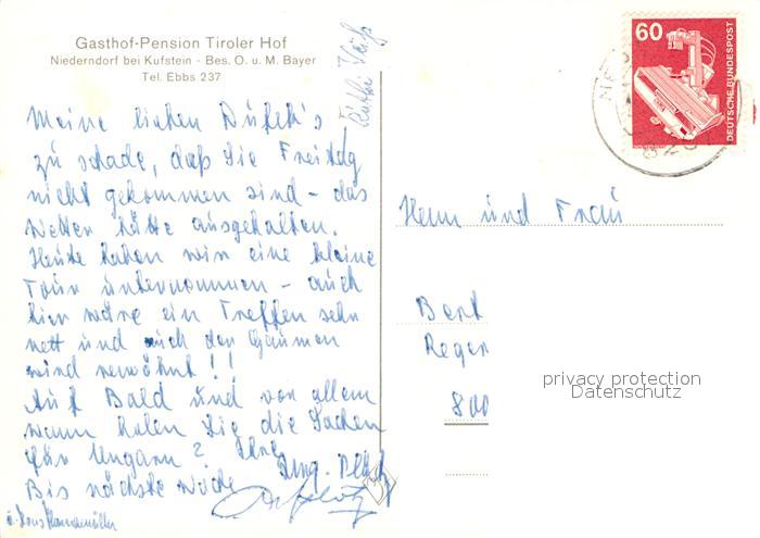 13009976 alte Postkarte Niederndorf Kufstein Gasthof Tiroler-Hof postalisch gelaufen Erhaltung siehe scans [NatalD47] KatCode: 11390335070518