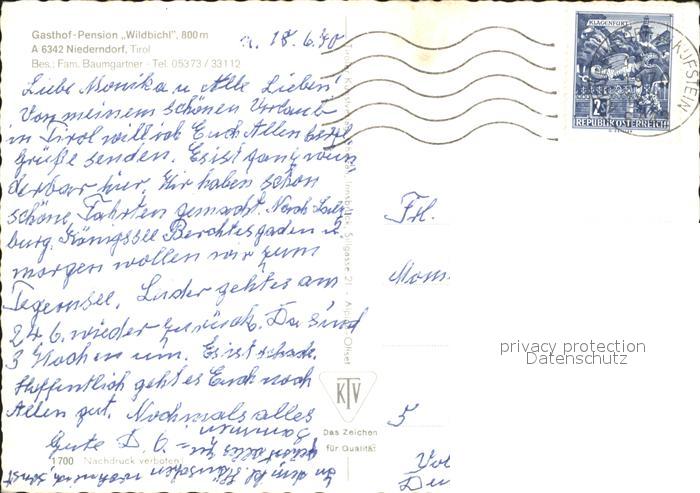 71935605 alte Postkarte Niederndorf Kufstein Gasthof Wildbichl postalisch gelaufen Erhaltung siehe scans KatCode: 11390335070518