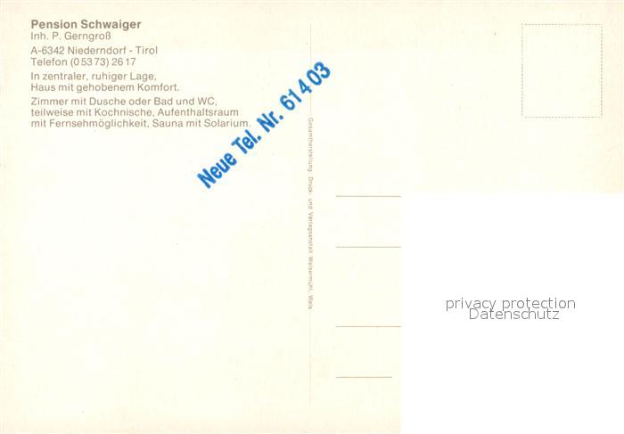 73285044 Niederndorf Kufstein Pension Schwaiger postalisch nicht gelaufen Erhaltung siehe scans [NatalD47] KatCode: 11390335070518