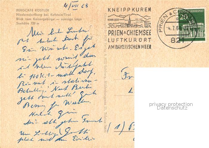 73521268 alte Postkarte Niederndorferberg Bergcafe Koestler Terrasse Blick zum Kaisergebirge postalisch gelaufen Erhaltung siehe scans [FriedD77] KatCode: 11390335070519