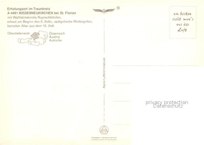 13339192 alte Postkarte Niederneukirchen Fliegeraufnahme mit Wallfahrtskirche Ruprechtshofen postalisch gelaufen Erhaltung siehe scans [WerneD78] KatCode: 11390312041015