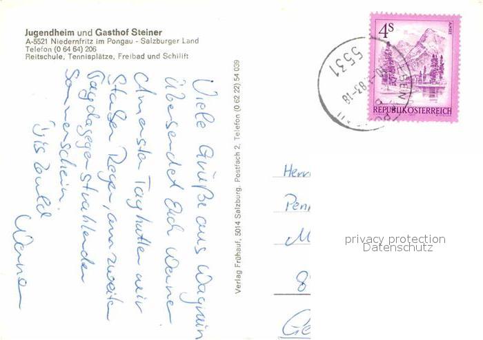 72673202 alte Postkarte Niedernfritz Jugendgaestehaus Steiner Reitschule Halle Gaststube Skilift postalisch gelaufen Erhaltung siehe scans [WerneD78] KatCode: 11390322050412