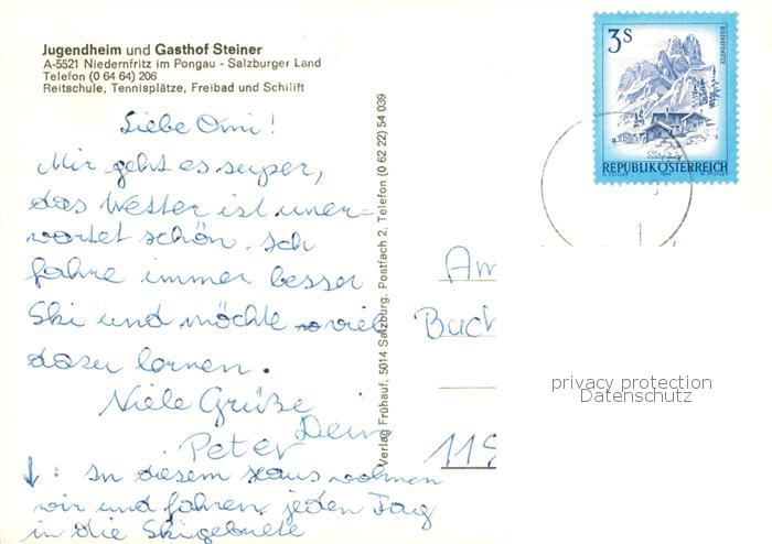 73861093 alte Postkarte Niedernfritz Salzburg AT Jugendgaestehaus Steiner Reithalle Gaststube Panorama postalisch gelaufen Erhaltung siehe scans [WerneD78] KatCode: 11390322050412
