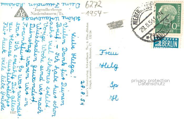 73749800 alte Postkarte Niedernhausen Taunus Jugendherberge postalisch gelaufen Erhaltung siehe scans [WerneD78] KatCode: 11110006439011