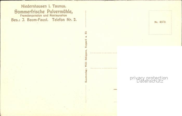 72126423 Niedernhausen Taunus Sommerfrische Pulvermuehle Pension Restauration postalisch nicht gelaufen Erhaltung siehe scans KatCode: 11110006439011