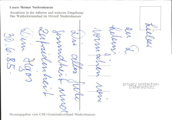 72241498 Niedernhausen Taunus Waldschwimmbad postalisch nicht gelaufen Erhaltung siehe scans KatCode: 11110006439011