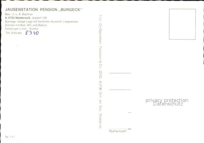 72528550 Niedernsill Jausenstation Pension Burgeck postalisch nicht gelaufen Erhaltung siehe scans KatCode: 11390322050615