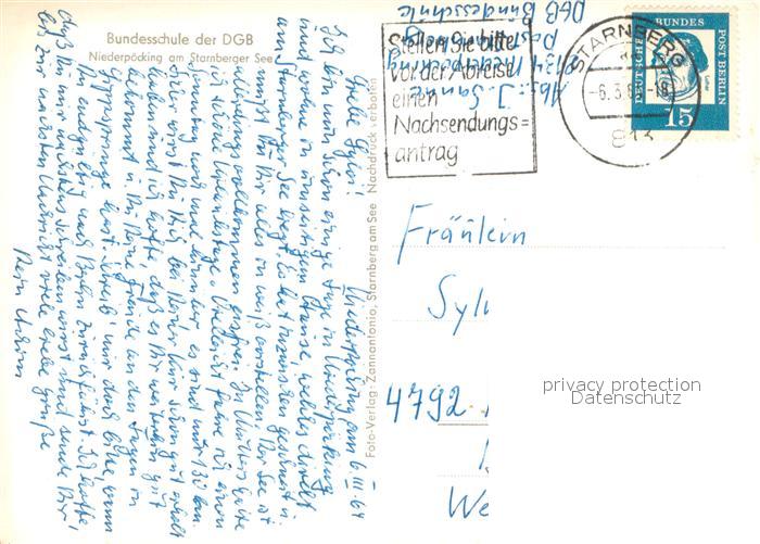 73644493 alte Postkarte Niederpoecking Bundesschule der DGB am Starnberger See postalisch gelaufen Erhaltung siehe scans [FriedD77] KatCode: 11110009188137