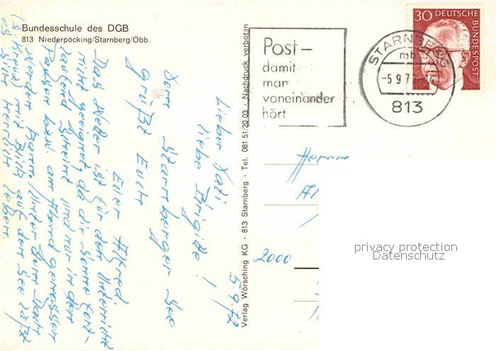 72865456 alte Postkarte Niederpoecking Bundesschule des DGB am Starnberger See postalisch gelaufen Erhaltung siehe scans [FriedD77] KatCode: 11110009188137
