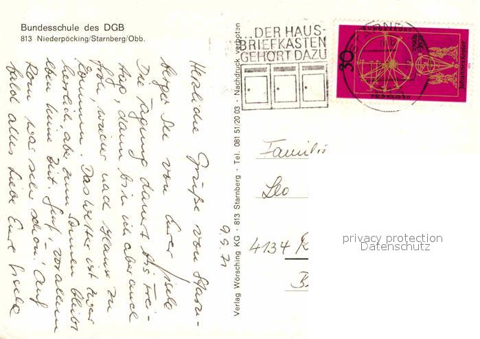72780113 alte Postkarte Niederpoecking Starnberg Bundesschule der DGB postalisch gelaufen Erhaltung siehe scans [LiesaD40] KatCode: 11110009188137