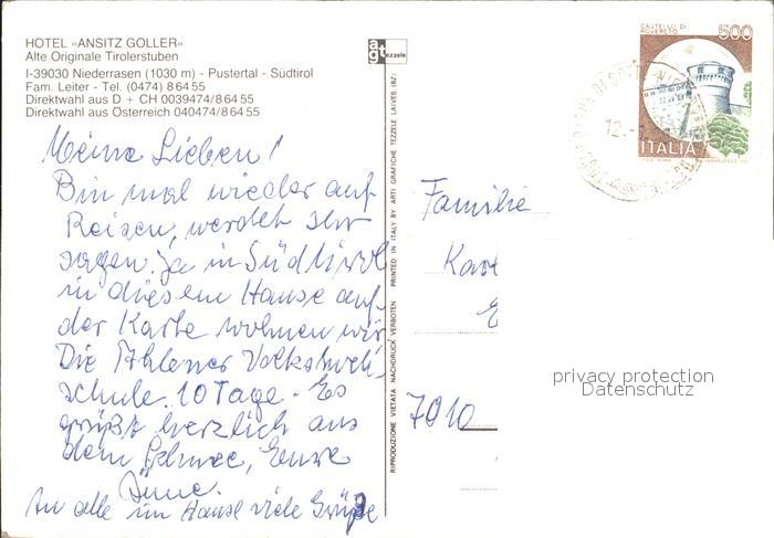old postcard Niederrasen Hotel Ansitz Gller postalisch gelaufen Erhaltung siehe scans