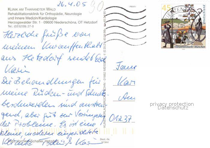 72782570 alte Postkarte Niederschoena Klinik am Tharandter Wald postalisch gelaufen Erhaltung siehe scans [LiesaD40] KatCode: 11110014177210