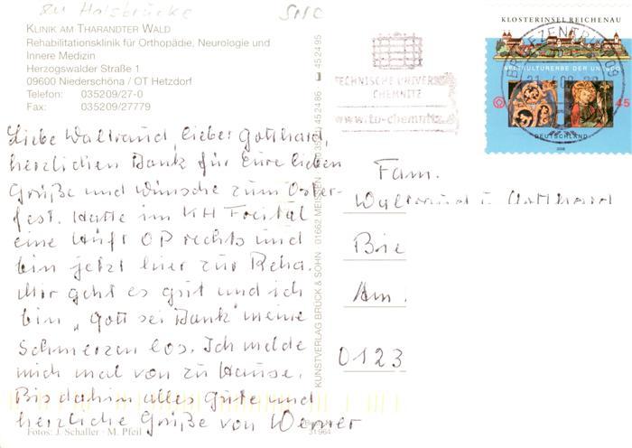 73881613 Niederschoena Klinik am Tharandter Wald Hallenbad Fliegeraufnahme Gastraum Waldpartie Zimmer postalisch nicht gelaufen Erhaltung siehe scans [WerneD78] KatCode: 11110014177210