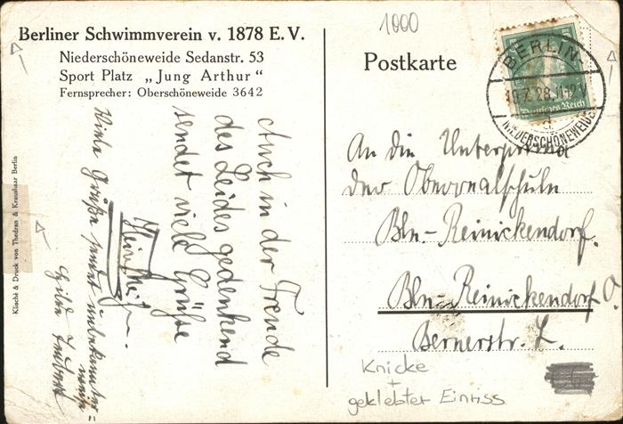 41314895 Niederschoenweide Berlin Vereinsheim Berliner Schwimmverein v 1878 postalisch gelaufen Erhaltung mit Maengel Alte Ansichtskarte Postkarte alte Postkarte hz_W Katcode 11110011000000
