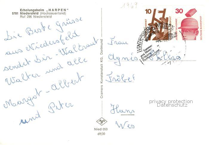 73140172 alte Postkarte Niedersfeld Erholungsheim Harpen postalisch gelaufen Erhaltung siehe scans [FriedD77] KatCode: 11110005958048