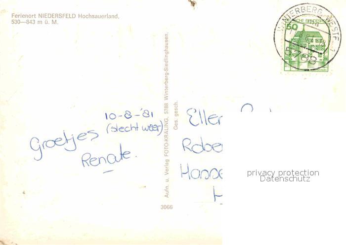 72663988 alte Postkarte Niedersfeld Panorama Ferienort postalisch gelaufen Erhaltung siehe scans [FriedD77] KatCode: 11110005958048