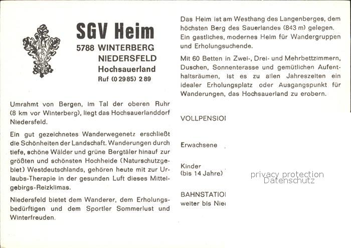 72449682 Niedersfeld SGV-Heim postalisch nicht gelaufen Werbekarte (keine Postkarte) Erhaltung siehe scans KatCode: 11110005958048