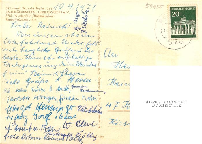 73086913 alte Postkarte Niedersfeld Wanderheim Sauerlaendischen Gebirgsverein postalisch gelaufen Erhaltung siehe scans [KathaD81] KatCode: 11110005958048