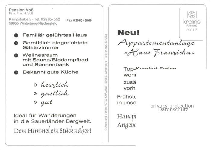 74095585 Niedersfeld Winterberg Hochsauerlandkreis NRW Pension Voss postalisch nicht gelaufen Werbekarte (keine Postkarte) Erhaltung siehe scans [WerneD78] KatCode: 11110005958048