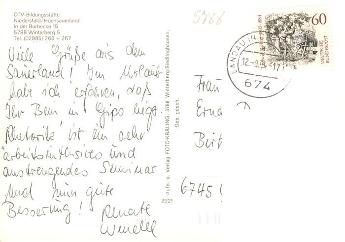 73942547 Niedersfeld Winterberg oeTV Bildungsstaette Gastraeume Panorama postalisch nicht gelaufen Erhaltung siehe scans [WerneD78] KatCode: 11110005958048