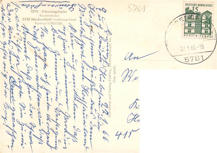 73942548 alte Postkarte Niedersfeld Winterberg oeTV Erholungsheim Gastraum postalisch gelaufen Erhaltung siehe scans [WerneD78] KatCode: 11110005958048
