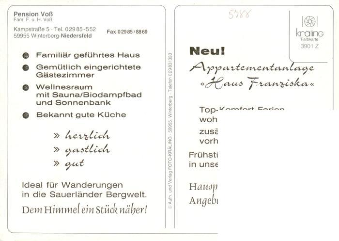 73942523 Niedersfeld Winterberg Pension Voss postalisch nicht gelaufen Werbekarte (keine Postkarte) Erhaltung siehe scans [WerneD78] KatCode: 11110005958048