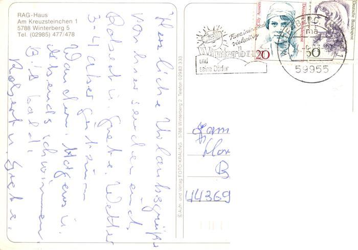 73886883 alte Postkarte Niedersfeld Winterberg Ruhrkohle Haus Eingangshalle Park Hallenbad postalisch gelaufen Erhaltung siehe scans [WerneD78] KatCode: 11110005958048