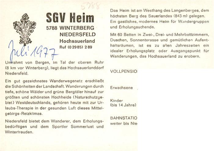 73942478 Niedersfeld Winterberg SGV Heim Gastraeume postalisch nicht gelaufen Erhaltung siehe scans [WerneD78] KatCode: 11110005958048