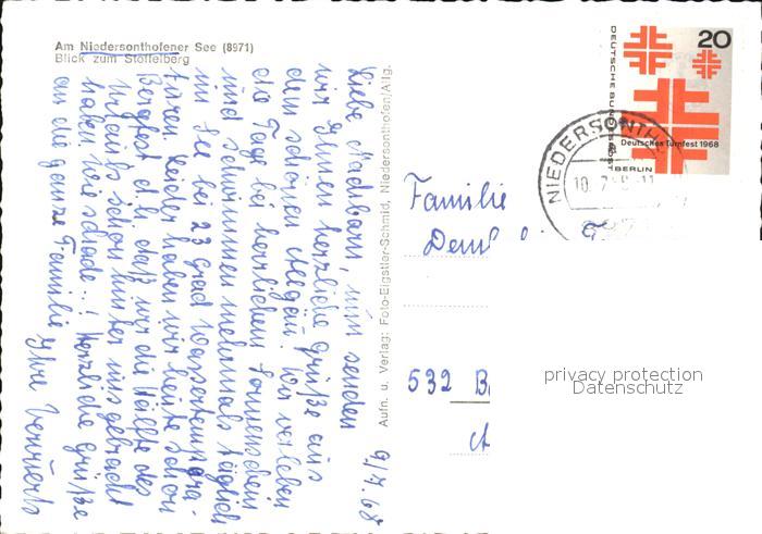 72403467 alte Postkarte Niedersonthofen Niedersonthofersee Blick zum Stoffelberg postalisch gelaufen Erhaltung siehe scans KatCode: 11110009780143