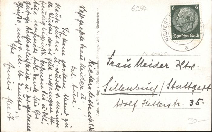 30725677 alte Postkarte Niederstetten Wuerttemberg Niederstetten Fliegeraufnahme postalisch gelaufen KatCode: 11110008128082