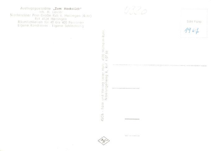 73912260 Niederstueter Sprockhoevel Ausflugsgaststaette Zum Hackstueck postalisch nicht gelaufen Erhaltung siehe scans [WerneD78] KatCode: 11110005954028