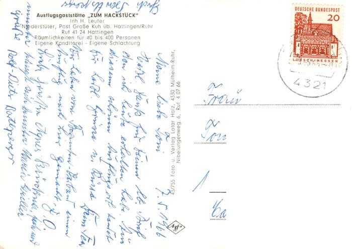 73902956 alte Postkarte Niederstueter Sprockhoevel Gaststaette Zum Hackstueck Gastraeume postalisch gelaufen Erhaltung siehe scans [WerneD78] KatCode: 11110005954028