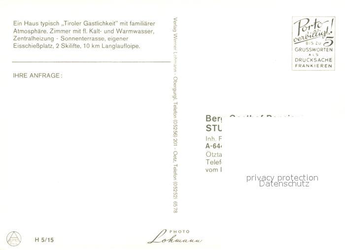 73518736 Niederthai Umhausen Tirol Berggasthof Pension Stuibenfall postalisch nicht gelaufen Werbekarte (keine Postkarte) Erhaltung siehe scans [KathaD81] KatCode: 11390334070223