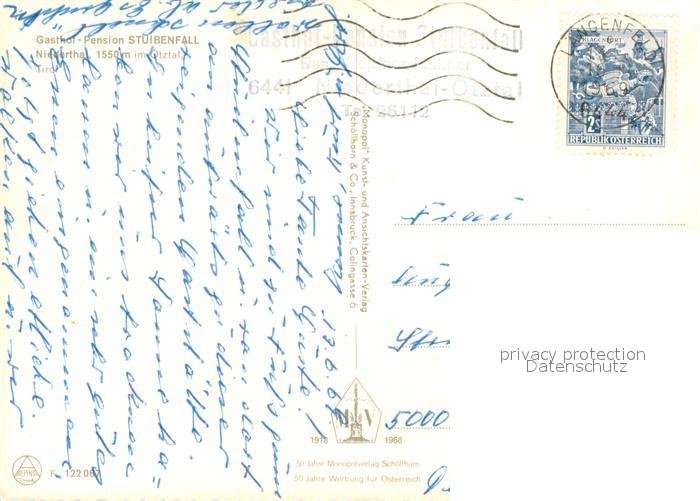 73702952 alte Postkarte Niederthal Gasthof Pension Stuibenfall oetztal postalisch gelaufen Erhaltung siehe scans [FriedD77] KatCode: 11390
