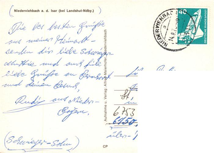 73886219 alte Postkarte Niederviehbach Fliegeraufnahme postalisch gelaufen Erhaltung siehe scans [WerneD78] KatCode: 11110009279130