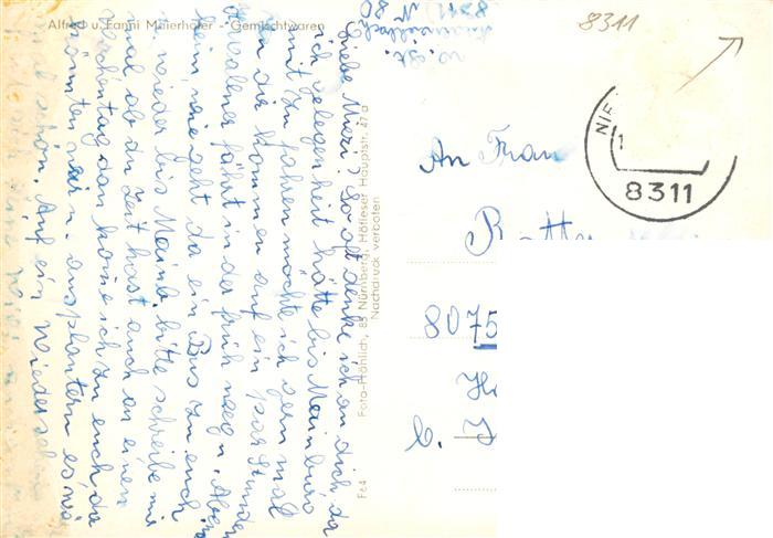 73886363 alte Postkarte Niederviehbach Ladengeschaeft Ansicht mit Kirche Stadtmauer Partie an der Isar postalisch gelaufen Erhaltung siehe scans [FriedD77] KatCode: 11110009279130