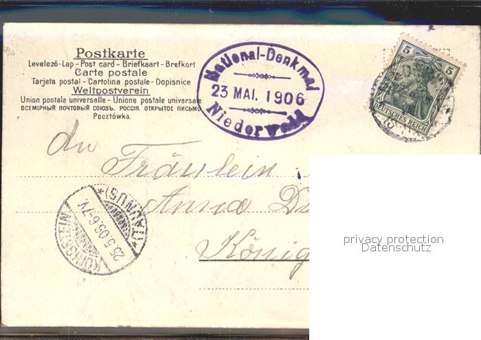 72096422 alte Postkarte Niederwalddenkmal postalisch gelaufen Erhaltung siehe scans KatCode: 11110006439013