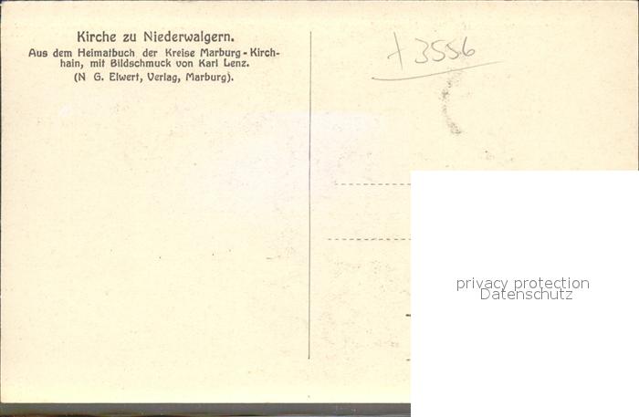 41988786 Niederwalgern Kirche Zeichnung postalisch nicht gelaufen Erhaltung siehe scans KatCode: 11110006534020