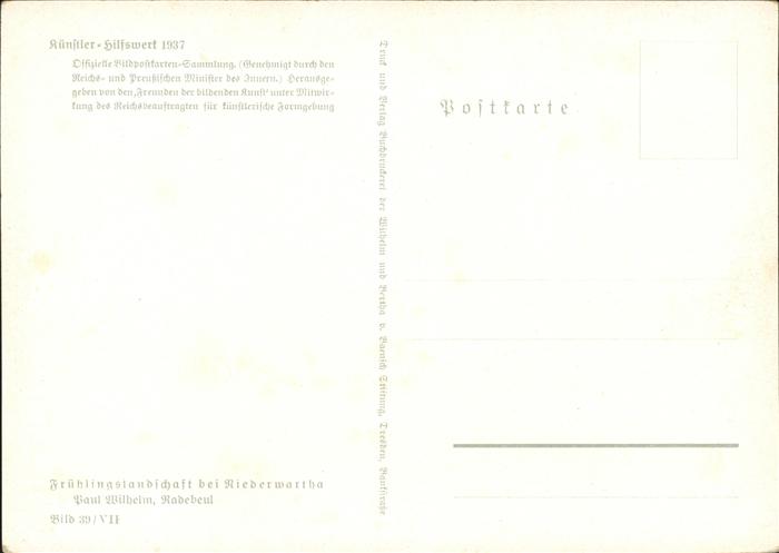 41195237 Niederwartha Frühlungslandschaft Künstlerkarte 1937 KatCode 11110014262000