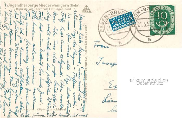 73795444 alte Postkarte Niederwenigern NRW Jugendherberge Seepartie postalisch gelaufen Erhaltung siehe scans [WerneD78] KatCode: 11110005954016