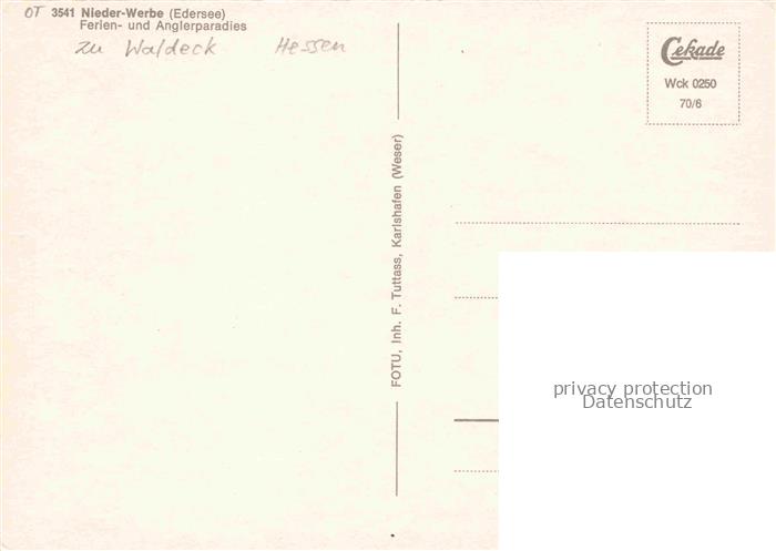 Niederwerbe Edersee Ferien und Anglerparadies postalisch nicht gelaufen Erhaltung siehe scans [WerneD78] Wern Katcode 11110006635021