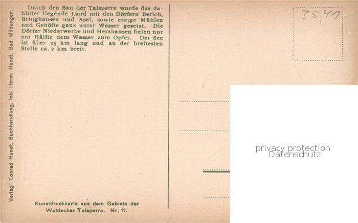 43369198 Niederwerbe Panorama Edersee im Werbetal Talsperre Kunstdruckkarte Waldecker Talsperre Nr. 11 postalisch nicht gelaufen Erhaltung siehe scans [FriedD77] KatCode: 11110006635021