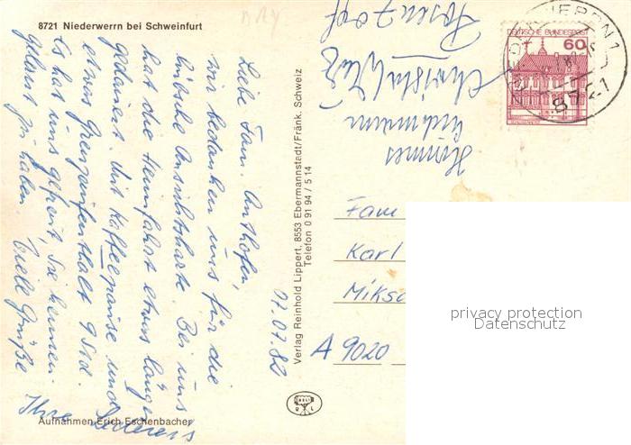 73055749 alte Postkarte Niederwerrn Kirche postalisch gelaufen Erhaltung siehe scans [NatalD47] KatCode: 11110009678160