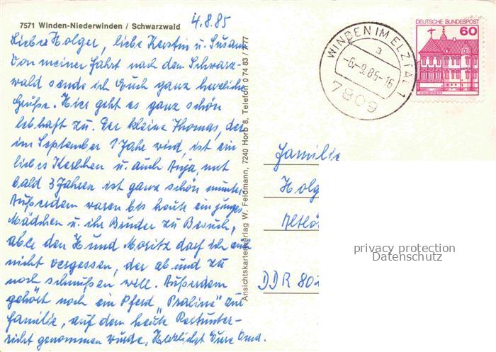 74042590 alte Postkarte Niederwinden Elztal BW Panorama Schwarzwald postalisch gelaufen Fliegeraufnahme Erhaltung siehe scans [FriedD77] KatCode: 11110008316055