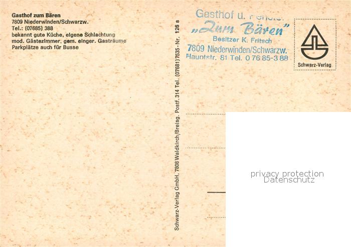 73608940 Niederwinden Elztal Gasthof Zum Baeren postalisch nicht gelaufen Erhaltung siehe scans [WerneD78] KatCode: 11110008316055