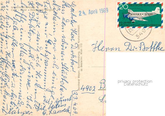 73782679 alte Postkarte Nieheim Cafe Hotel Restaurant Berghof postalisch gelaufen Erhaltung siehe scans [FriedD77] KatCode: 11110005762028